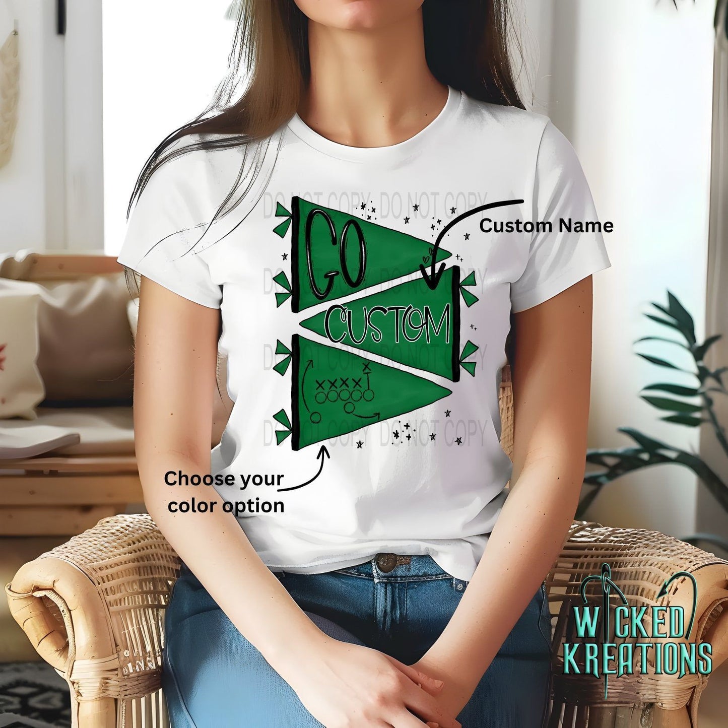 Custom Go Mascot Pennant Flag Graphic Tee