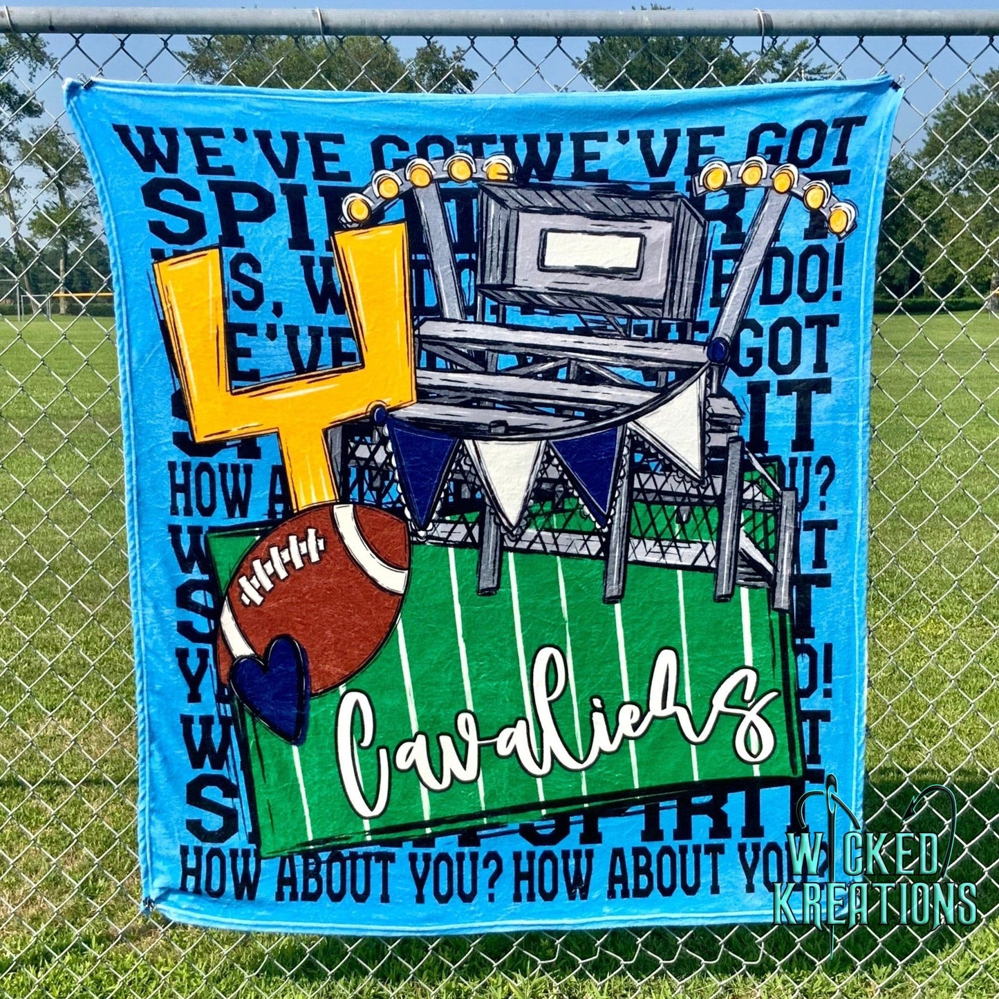 Introducing our plush " Custom-We’ve Got Spirit" football blanket, the perfect cozy companion for any football fan! Made from ultra-soft polyester, it ensures warmth and comfort whether you're watching the local high school football game or relaxing on the couch.